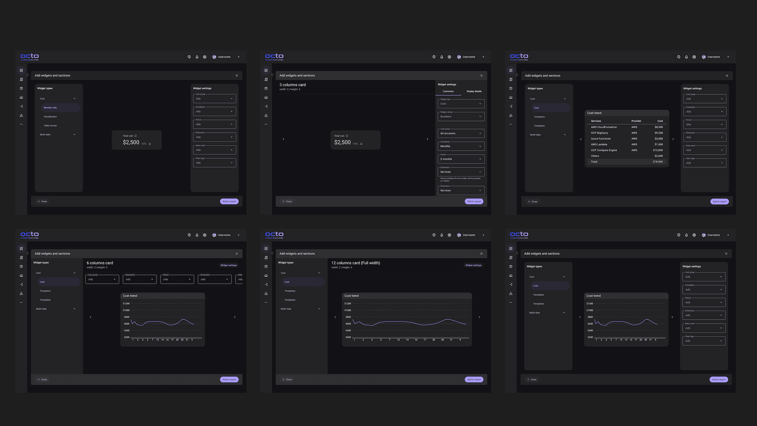 Having more widget variants were good generally as users had more flexibility to express different cost data but this meant that the old way of widget selection and report customization needs to be completely rethink.