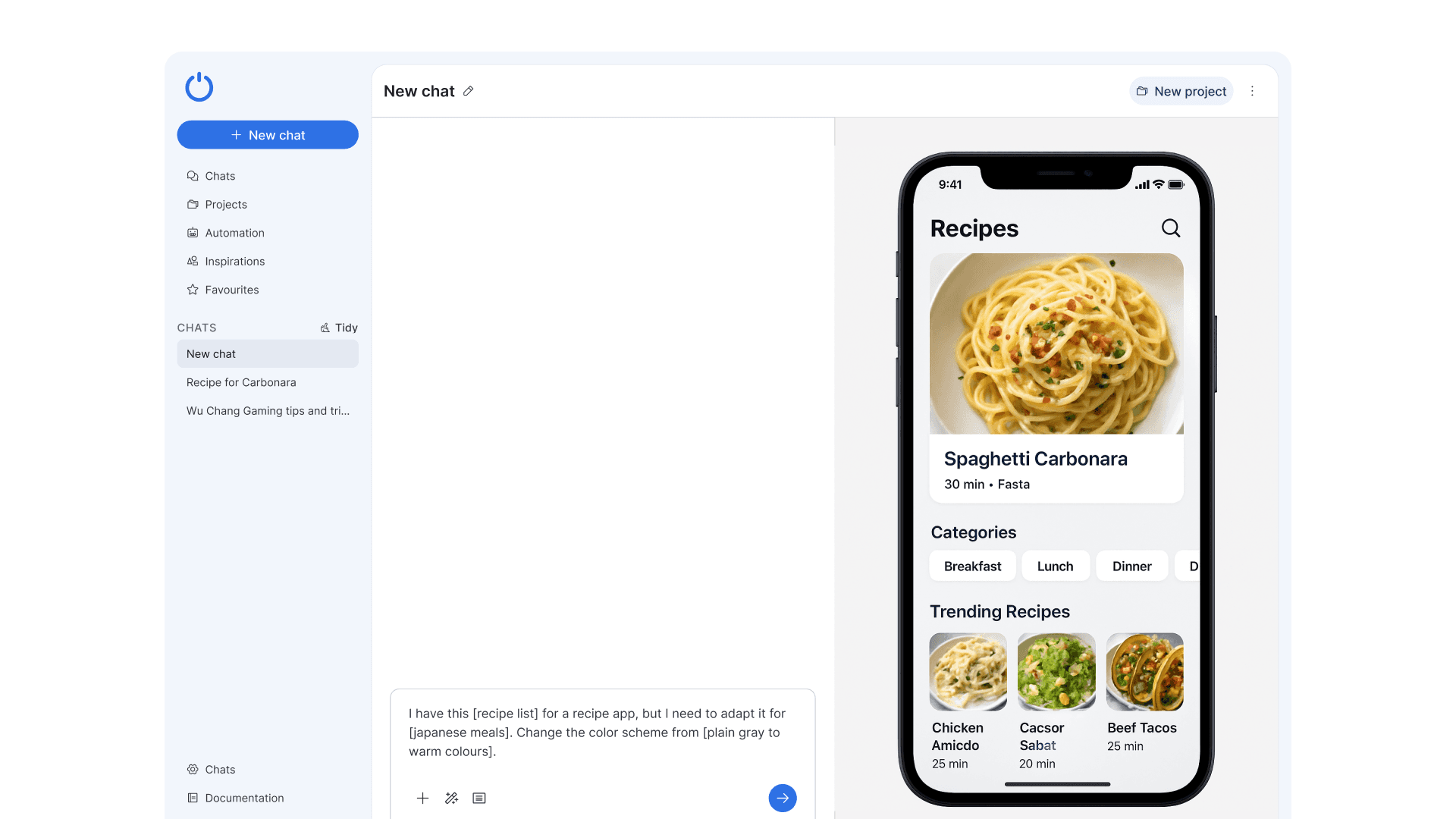 The last thing here was the improvement towards the existing tidy chat feature. This feature was liked by all users who tested it and the only thing here I added was that instead of just organising into relevant groupings. The user could also create new Projects with them easily with the one click.