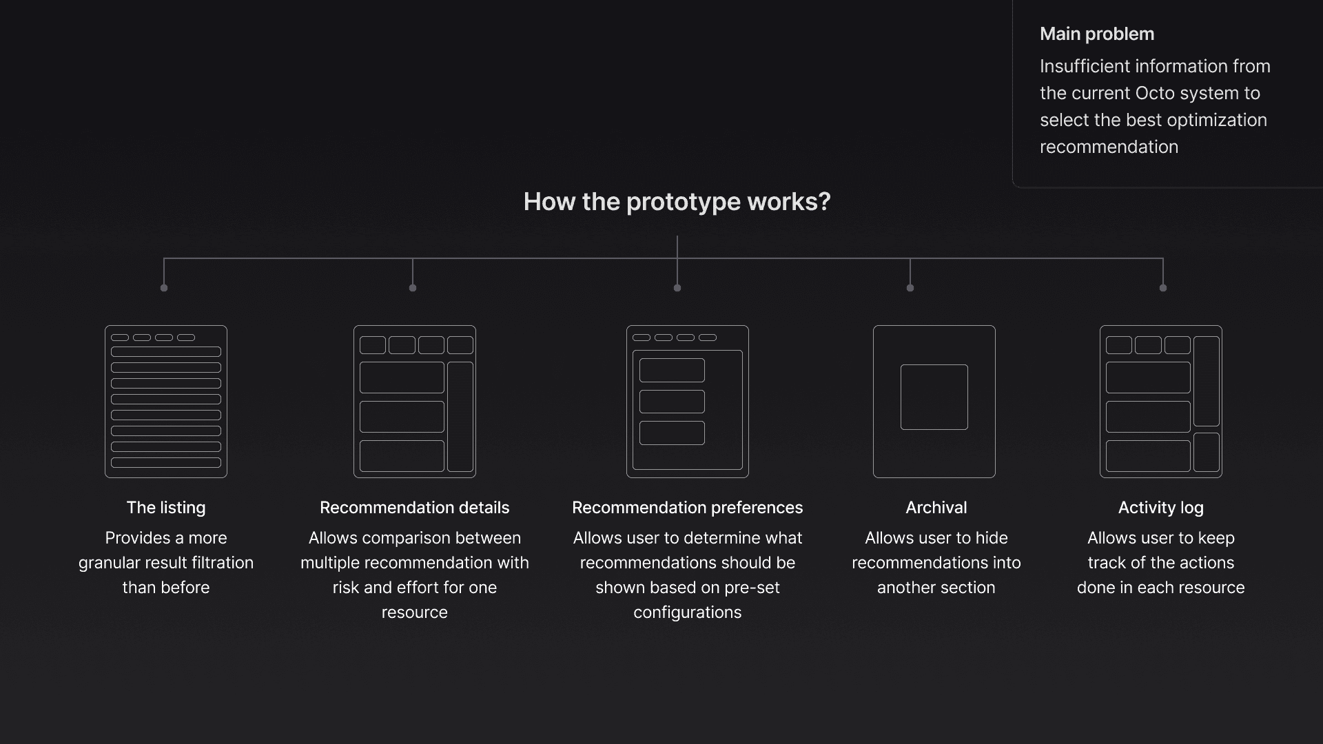Designed the recommendation page to help users filter, prioritize, and track hundreds of optimization suggestions. Introduced risk/effort filters, side-by-side comparison (deferred to later phase), preference suppression, and an activity log.